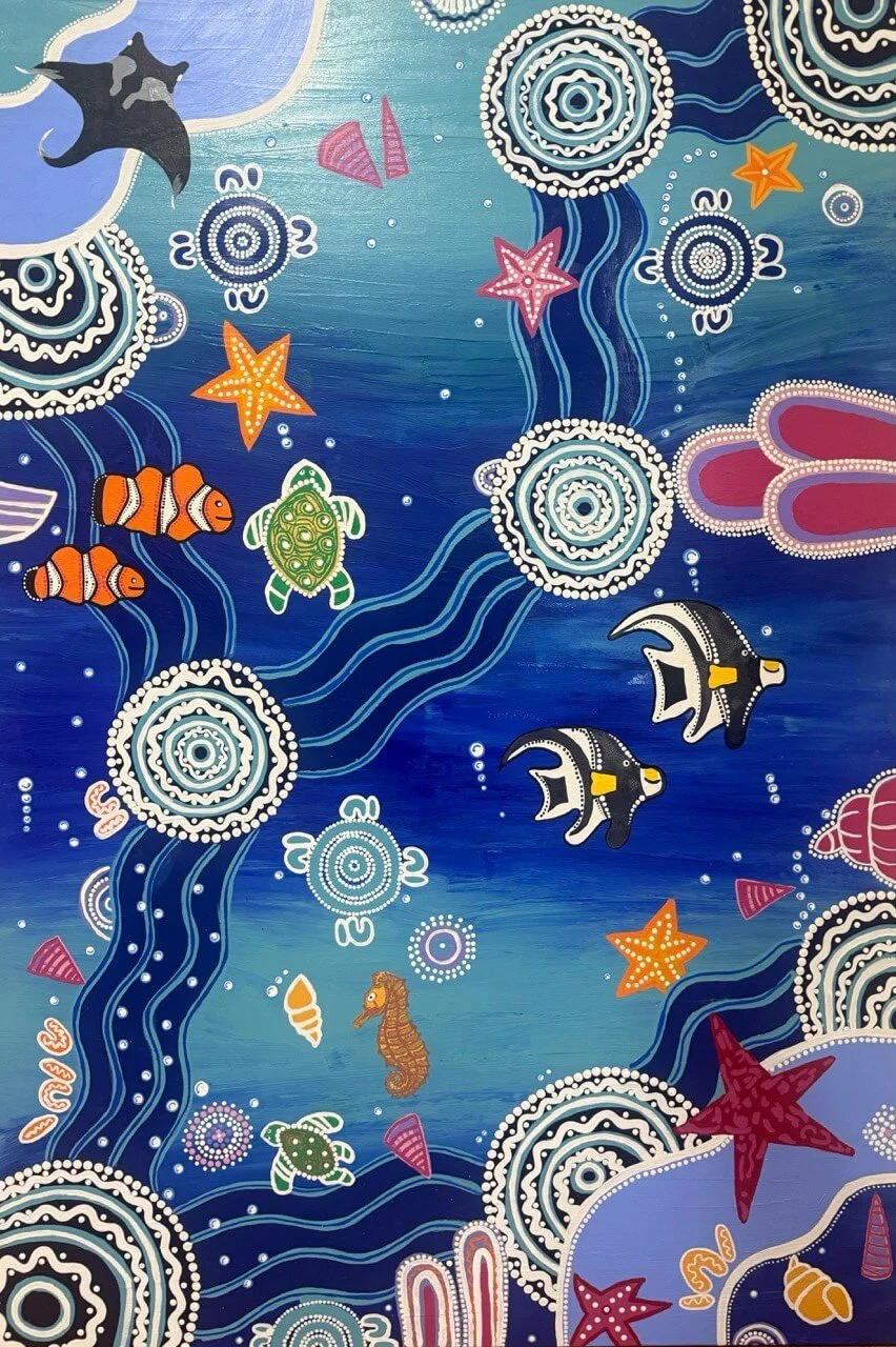 The Story Behind the Painting This painting is inspired by one of my favourite memories—a family trip to the Gold Coast. I remember the feeling of warm sand between my toes, the salty air on my skin, and the way the sea shimmered like it was holding stories just beneath the surface. Everything felt alive—bright, colourful, and full of joy.